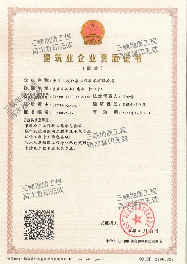 閲嶅簡涓夊場鍦拌川宸ョ▼鎶鏈湁闄愬叕鍙告垚绔嬩簬1993騫達紝鏄竴瀹墮泦鍦板熀鍩虹宸ョ▼涓撲笟鎵垮寘澹圭駭錛岄槻姘撮槻鑵愪繚娓╁伐紼嬩笓涓氭壙鍖呰窗綰э紝甯傛斂鍏敤宸ョ▼鏂藉伐鎬繪壙鍖呫佸彜寤虹瓚宸ョ▼涓撲笟鎵垮寘銆佺幆淇濆伐紼嬩笓涓氭壙鍖呭拰鍩庡競鍙婇亾璺収鏄庡伐紼嬩笓涓氭壙鍖呭弫綰ц祫璐ㄧ患鍚堜負涓浣撶殑鏂藉伐浼佷笟銆備富钀ヤ笟鍔¤寖鍥村湴鍩轟笌鍩虹宸ョ▼錛屽寘鎷湴鍩哄鐞嗭紙濡傚己澶湴鍩恒佸己澶疆鎹㈠強鍚勭被澶嶅悎鍦板熀鏂藉伐錛夈佸熀紜宸ョ▼錛堝鍚勭被妗╁熀紜鏂藉伐)銆佽竟鍧℃敮鎶わ紙濡傚柗閿氭敮鎶ゃ佹尅鍦熷銆佽竟鍧″紑鎸栨柦宸ワ級銆佸熀鍧戞敮鎶や互鍙婂湡鏂瑰伐紼嬬瓑銆傚凡鎵垮緩鐨勫伐紼嬮」鐩秹鍙婂埌鏈哄満銆佺煶娌瑰寲宸ャ佺爜澶淬佸叕璺侀搧璺佸ぇ鍨嬪伐涓氬巶鎴褲佷綇瀹呭皬鍖恒?鐭垮北銆佷粨鍌ㄧ墿嫻佺瓑棰嗗煙銆? 鍏徃涓嬭9涓儴闂細琛屾斂浜轟簨閮ㄣ佽儲鍔¢儴銆佸競鍦洪儴銆佸伐紼嬮儴銆佹妧鏈儴銆佸畨鍏ㄩ儴銆佹垚鏈犱環閮ㄣ佹満姊拌澶囬儴鍙婇噰璐儴銆?涓姙浜嬪錛氳吹宸炲姙浜嬪鍜屾嘲鍥藉姙浜嬪銆傞氳繃榪?0騫寸殑鍔姏錛屽叕鍙稿湪宀╁湡宸ョ▼涓婄Н绱簡澶ч噺鐨勫伐紼嬬鐞嗐佹妧鏈拰鏂藉伐緇忛獙錛屽緩绔嬭搗浜嗕竴鏀笓涓氬寲鐨勬柦宸ユ妧鏈鐞嗗洟闃燂紝鍏徃鐜版湁鍛樺伐235浜猴紝鍏朵腑涓撲笟綆$悊浜哄憳鍜屾妧鏈騫?8浜猴紝涓撲笟鎶鏈伐浜?67浜恒? 鍏徃宸插彇寰桮B/T19001-2016/ISO9001錛?015鍜孏B/T50430-2017璐ㄩ噺綆$悊浣撶郴璁よ瘉璇佷功銆丟B/T24001-2016idtISO14001錛?015鐜綆$悊浣撶郴璁よ瘉璇佷功鍜孖SO45001:2018鑱屼笟鍋ュ悍瀹夊叏綆$悊浣撶郴璁よ瘉璇佷功錛屽茍鑾峰緱浜嗛噸搴嗗競縐戝鎶鏈眬棰佸彂鐨勫浗瀹墮珮鏂版妧鏈紒涓氳瘉涔︿互鍙夾AA綰т紒涓氫俊鐢ㄧ瓑綰ц瘉涔︺? 寮哄く鍜屽己澶疆鎹㈡柦宸ユ槸鎴戝叕鍙告牳蹇冪珵浜夊姏浜у搧錛岀洰鍓嶆垜鍏徃鑳藉鎵挎媴25000KN路m鑳界駭浠ュ唴鐨勫悇縐嶅く鍑昏兘寮哄く鏂藉伐錛屽彲涓嬈℃у己澶鐞?0綾蟲繁搴︿互鍐呯殑杞湡鍦板熀錛屽茍鎷ユ湁鍚勭鍦拌川鏉′歡鐨勫己澶強寮哄く緗崲鏂藉伐緇忛獙銆? 鍏徃鐜版湁澶у皬寮哄く璁懼36鍙幫紝鍏朵腑瀹囬?000鍨?鍙幫紝瀹囬?00鍨?鍙幫紝瀹囬?00鍨?鍙幫紝瀹囬?50鍨?鍙幫紝瀹囬?00鍨?鍙幫紝瀹囬?50鍨?鍙幫紝鏉噸7000鍨嬪己澶満3鍙幫紝鏉噸5000鍨嬪己澶満5鍙幫紝鏉噸3000鍨?鍙幫紝SD160鎺ㄥ湡鏈?鍙幫紝6000KN路m~25000KN路m澶嚮鑳介棬鏋?2濂椼? 閲嶅簡涓夊場鍦拌川宸ョ▼鎶鏈湁闄愬叕鍙稿潥鎸佲滀互璇氬疄瀹堜俊涓哄噯鍒欍佷互鍒涙柊涓虹伒欖傘佷互璐ㄩ噺姹傜敓瀛樷濈殑緇忚惀瀹楁棬錛岀璇氫笌鍚勮涓氱敤鎴瘋繘琛屽箍娉涘悎浣滐紝閫愭鍙戝睍鎴愪負瑗垮崡鍦板尯涓撲笟鍦板熀鍩虹鏂藉伐鐨勭煡鍚嶄紒涓氥傚騫存潵錛屾垜鍏徃鍦ㄥ浗鍐呭甯傚満縐瀬寮鎷撹繘鍙栵紝鍙戝睍鑴氭宸查亶甯冩搗鍐呭甯傚満錛岀幇宸插崰鎹簡涓瀹氱殑甯傚満浠介銆傛垜浠潥淇¢殢鐫鍏徃鐨勪笉鏂彂灞曚互鍙婂鎴風殑淇′換錛屾垜浠皢浼氫互鏇翠紭鑹殑宸ョ▼璐ㄩ噺銆佹洿浼樼鐨勬妧鏈湇鍔″洖鎶ユ柊鑰佸鎴鳳紒?鈥? 鏌ョ湅璇︽儏>>